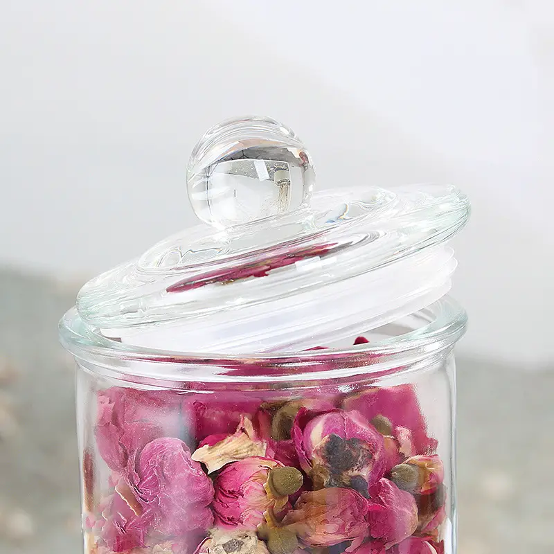 The removable, airtight lids for these small candy jars are designed with silicone sealing rings, keeping out water, dust, and other contaminants. These versatile glass jars are ideal for holding everything from daily essentials to jars for Christmas treats, whether in the bathroom, bedroom, vanity countertop, kitchen, or office.