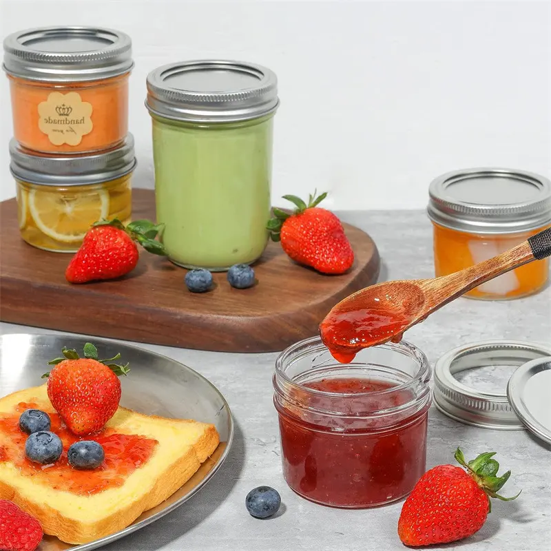 Minghang's mini mason jars are 100% recyclable glass. They are free from BPA, lead, and cadmium. These small glass mason jars are eco-friendly and can be reused endlessly. The clear glass lets you easily see what's inside, making them perfect for storing foods like jams or as a caviar container.