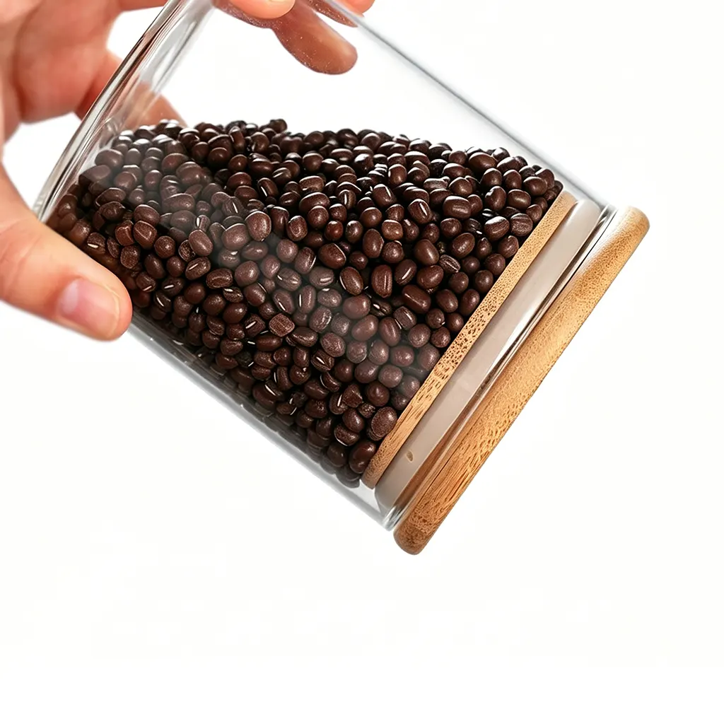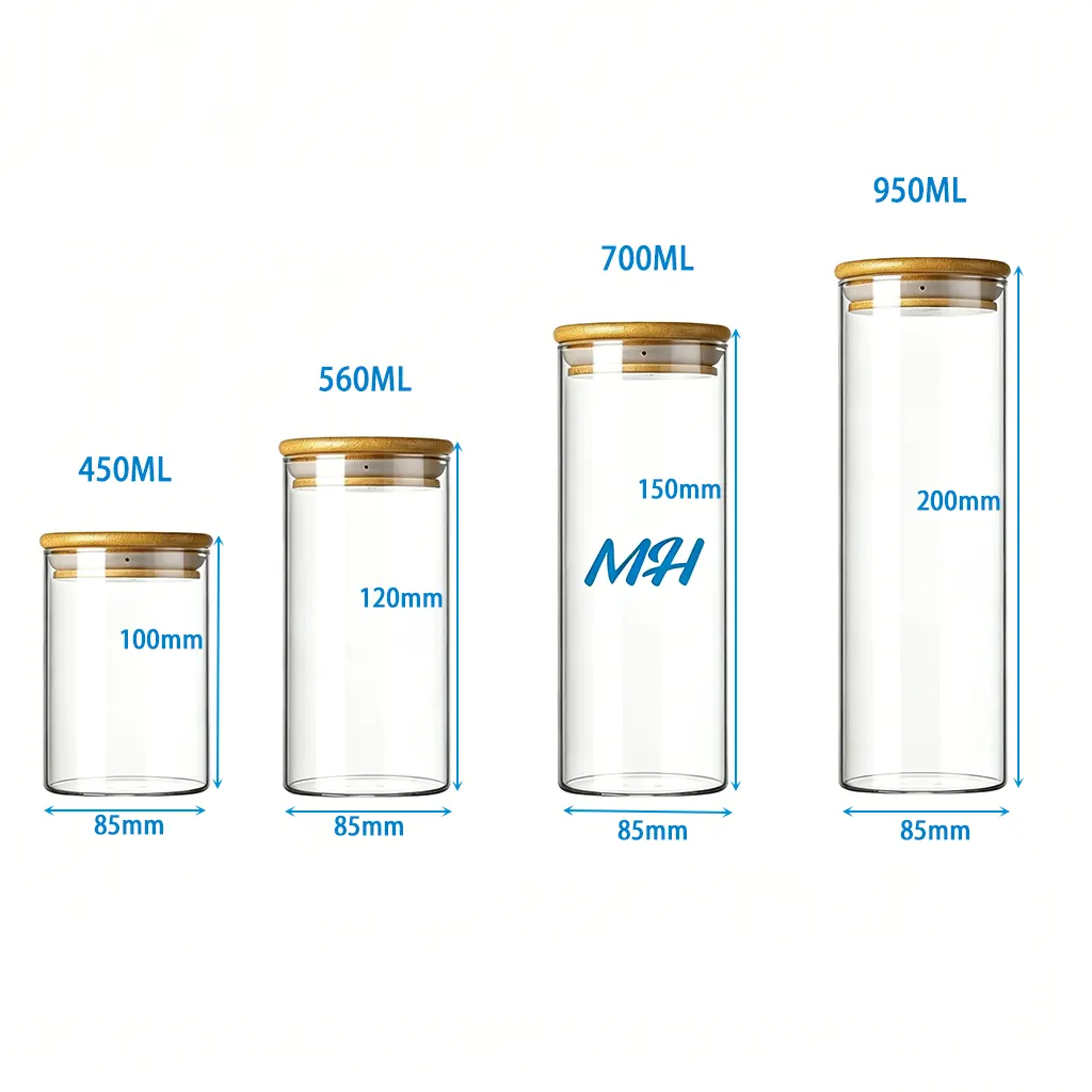 Jde o skleněné sklenice se víky, vyrobené z kvalitního borosilikátového skla s průhledným válcovým tvarem se střídně rovnými stěnami a přírodním bambusovým víkem se těsněním z potravinářského silicone. Všechny sklenice mají stejný průměr (85 mm) a různé výšky (100 mm až 200 mm), čímž vytvářejí jednotnou výrobní řadu vhodnou k vystavení na regálech. Design ve formě širokohrdelné sklenice usnadňuje naplnění i čištění, a proto je tento obal vhodný pro ukládání potravin, suchých výrobků nebo jako nádoba na svíčky. Tyto univerzální sklenice jsou značkami široce využívány pro balení, maloobchod a služby v oblasti ubytování, zejména při dávkovém a velkoobchodním rozdělování.