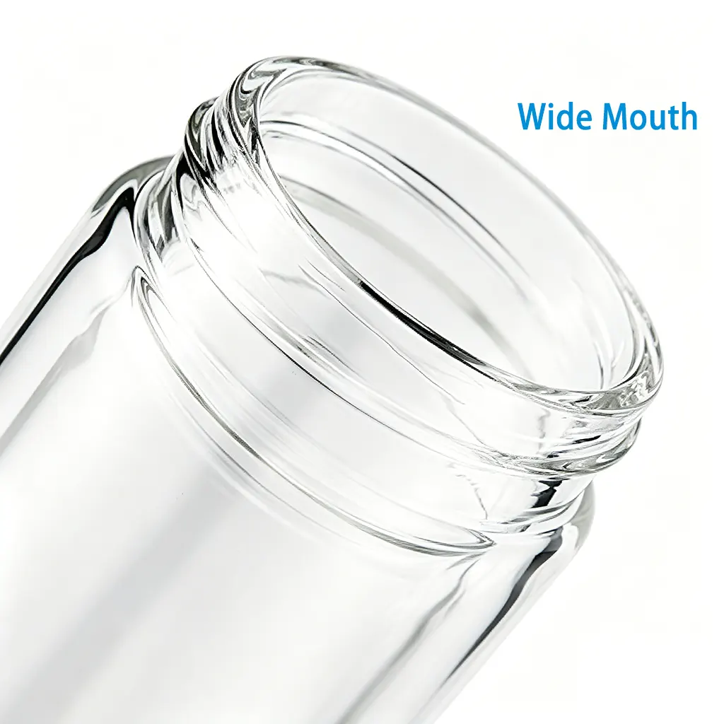 Ez egy boroszilikát üvegből készült vízpalack sima, hengeres formájú, kristálytiszta üvegpalack-testtel és egyszerű, rozsdamentes acél tetejével. Az átlátszó dizájn hangsúlyozza az italok tisztaságát, és vízre, teára, ízesített italokra és hideg főzésű kávéra egyaránt alkalmas. Széles nyílású üvegpalackként könnyen megtölthető és tisztítható, arányai pedig úgy vannak kiegyensúlyozva, hogy kényelmes legyen a használata – akár munkába járás közben az irodába, akár edzés közben, akár egy kiskereskedelmi üzletben való kiképzésre.