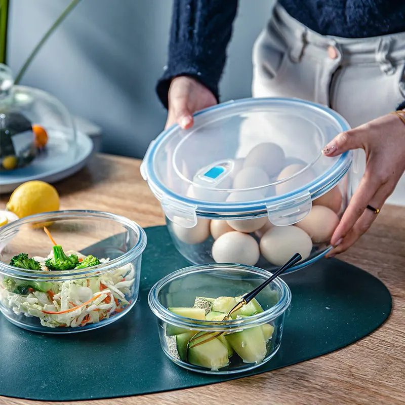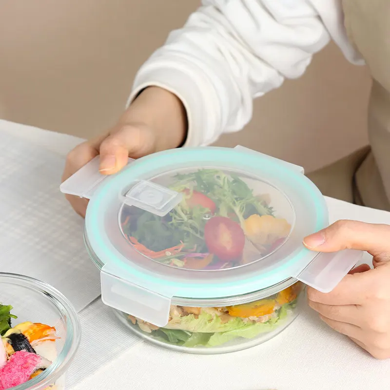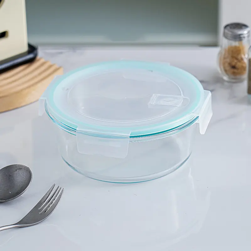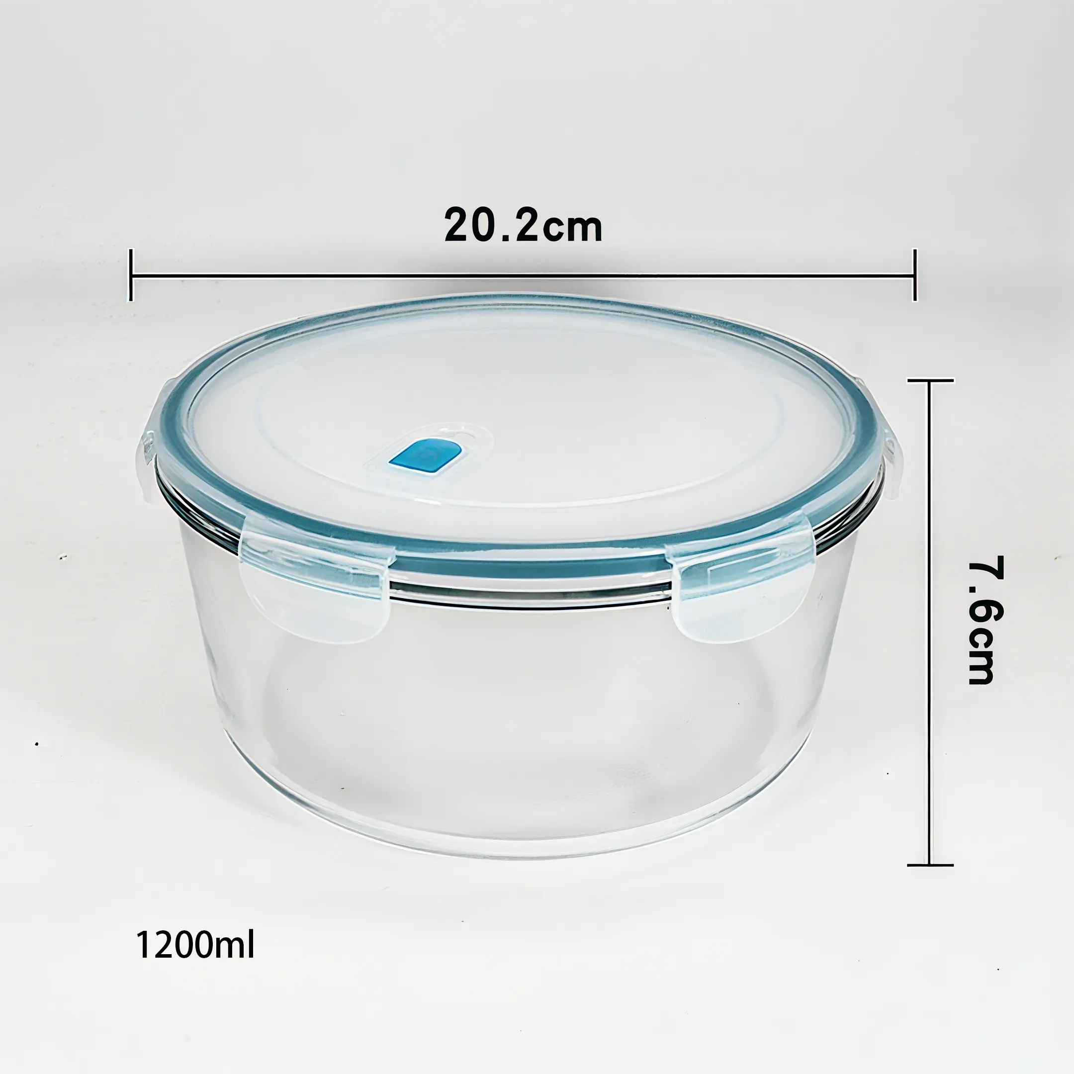 800ml 1200ml Yuvarlak Cam Yemek Saklama Kabı