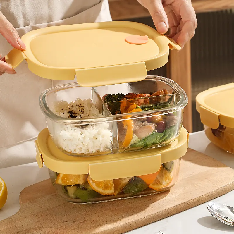 800ml 950ml 3 Bölmeli Cam Yemek Kabı