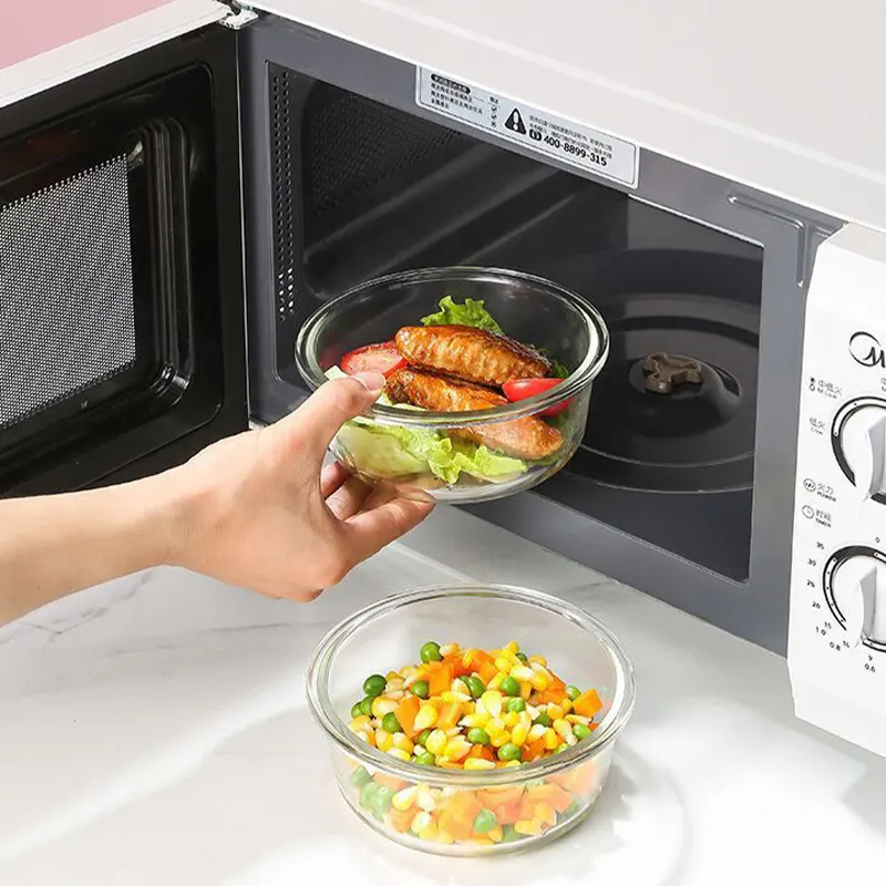 860ml 600ml 400ml Yemek İçin Kapaklı Yuvarlak Cam Kaplar