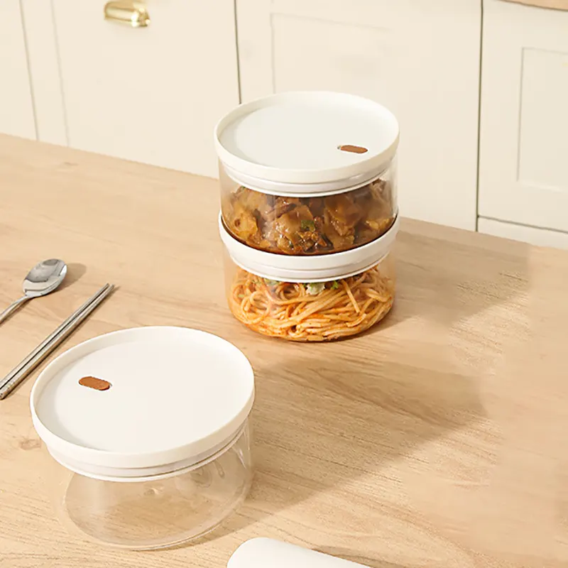 Bu küresel, hava geçirmez cam kabın tasarruf sağlayan bir tasarımı vardır ve bu, buzdolabı veya dolap içine sığmasını kolaylaştırır; bu da mutfağa çalışanlar veya toplu depolama için en iyisidir. Silikon contalı ve ventilli beyaz plastik kapak, yiyeceklerin tazeliğini etkili bir şekilde korurken mikrodalga ısıtma sırasında oluşan basıncı uygun şekilde serbest bırakır. Saydam borosilikat cam, içeriklerin hızlıca tanınmasını sağlar ve sık sık açmaya gerek kalmaz. Ayrıca, cam kap özel renkli kapaklarla veya özel etiketlerle birlikte kullanılabilir, markanızı özelleştirmenize olanak sağlar.