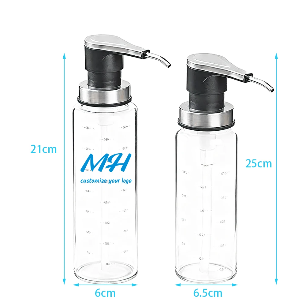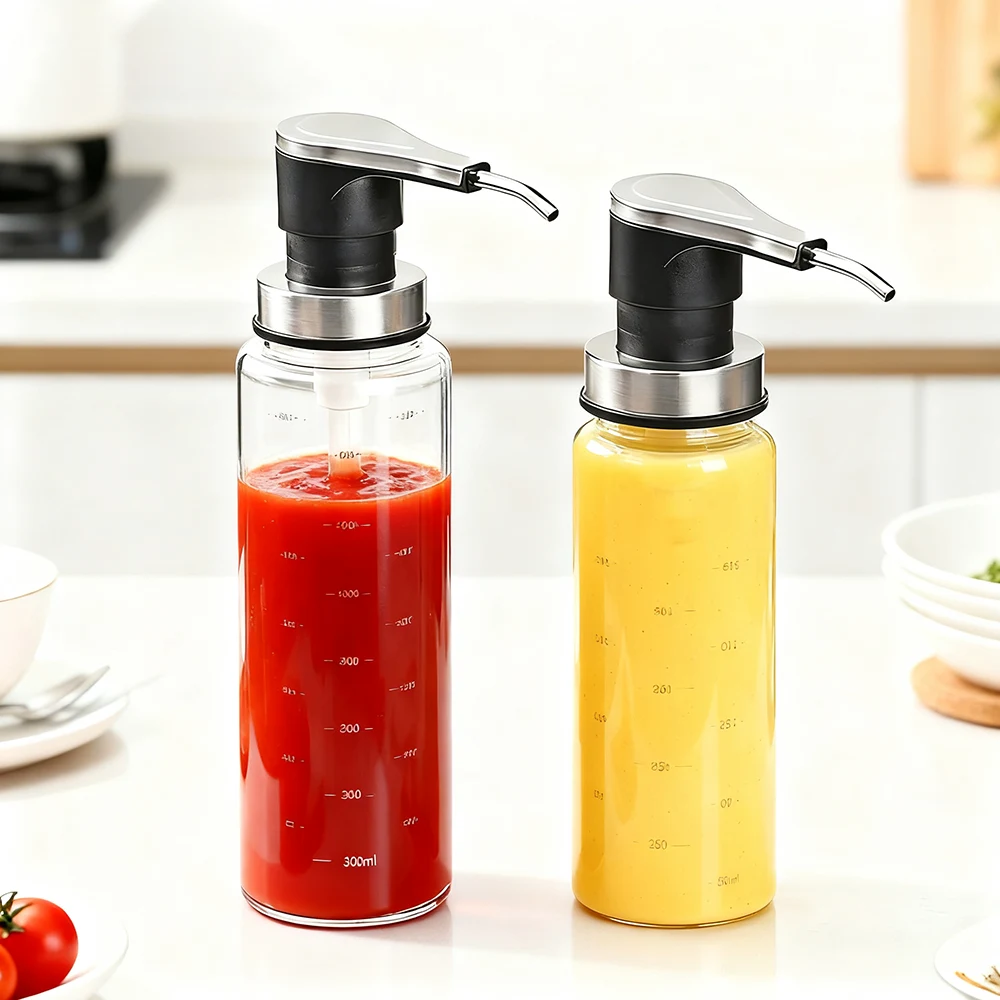 Soslar için bu cam şişeler şeffaf, ölçekli cam kaplara ve şık gümüş renkli metal pompalı başlıklara sahiptir. İki farklı boyutta sunulan işlevsel ve modaya uygun tasarımı sayesinde sosu tam olarak dağıtmanız mümkün olur ve kalan miktarı kolayca görebilirsiniz.